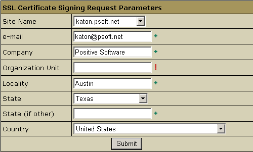 • SSL Certificate Signing request. It includes the details that you submitted on the previous step. Use this request to get an SSL certificate from Comodo.