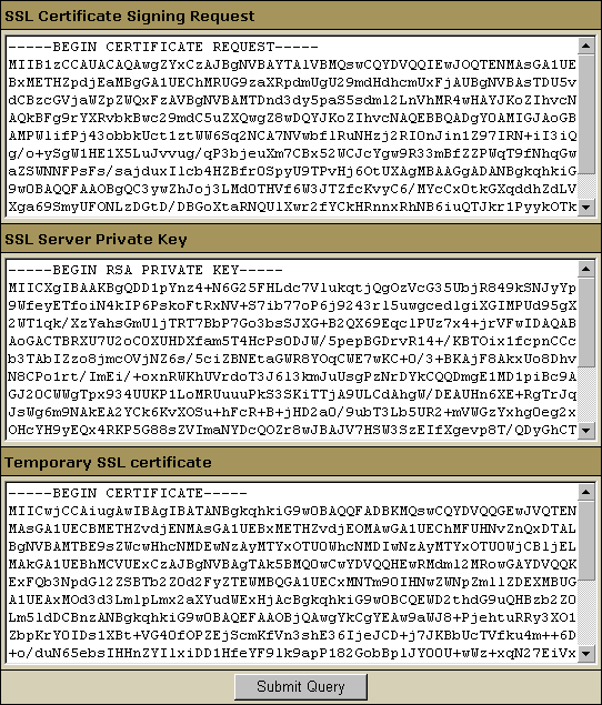 • SSL Server Private Key. This is the secret key to decrypt messages from your visitors. It must be stored in a secure place where it is inaccessible to others. Don't lose this key, you will need it if you get a permanent certificate.