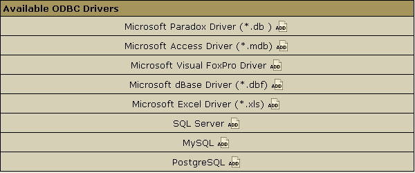 - Select ODBC Service in the ODBC menu. This will open a page similar to the one above