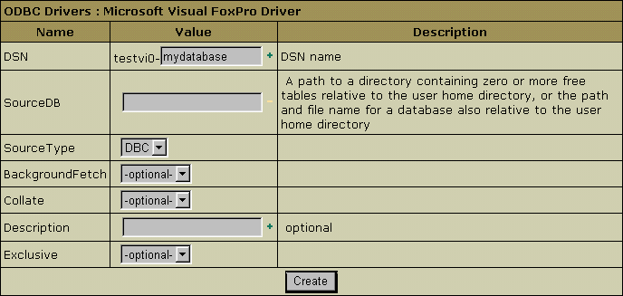 - Fill the form that appears. Forms are different depending on the DSN type: