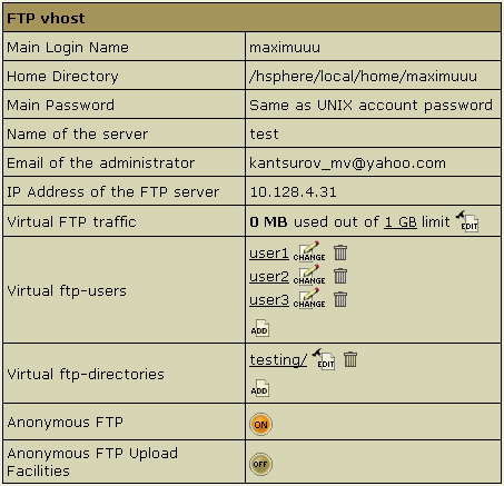 - At the bottom of the page that shows, find FTP sub-accounts and click the Add