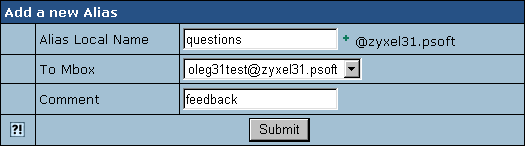 8. In the To Mbox field select the local mailbox you are creating the alias for.