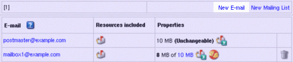 - Click New E-mail on the maildomain Controls page: