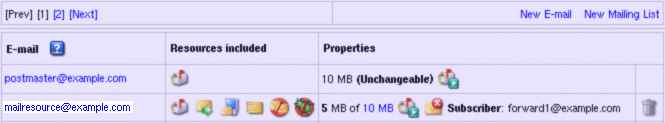 - Click the e-mail address in the E-mail list on the maildomain Controls page.