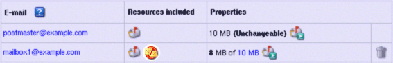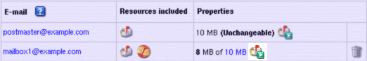- On the maildomain Controls page click the of X MB link in the mailbox Properites entry: