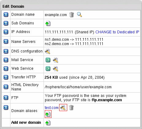 - At the bottom of the form, click Add to add a totally new domain alias or