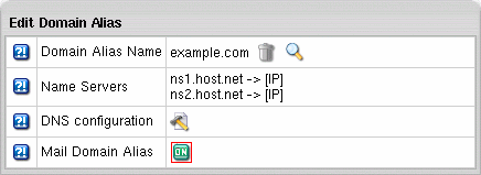 - The Mail Domain Aliases section will list all the current mail domain aliases