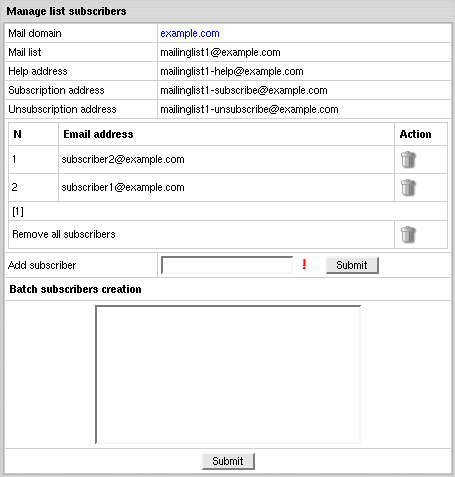 Enter the e-mail address that enables mail list subscribers