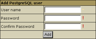- Select PGSQL in the Databases menu and Add PostgreSQL user form automatically appears.