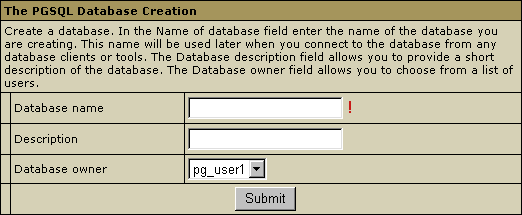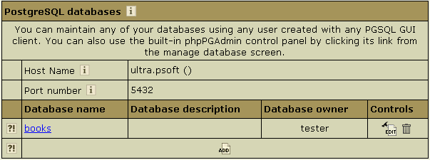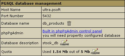 - In the form that appears, click Built in phpPgAdmin