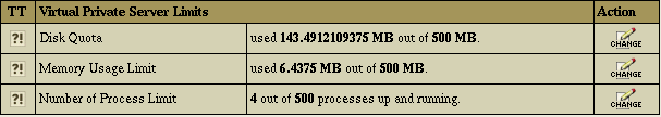 - Select Server limits in the Virtual Private Server menu.